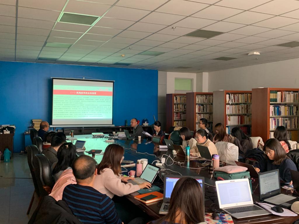 杜顺豪处长以历次党和国家机构改革为切入点,从“地方机构改革的六个‘贯彻始终’、宁夏机构改革和机构改革取得的重大成效”三个方面进行了重点阐释。杜顺豪处长指出,深化机构改革,要以习近平新时代中国特色社会主义思想为指导,把坚持和加强党的全面领导、践行以人民为中心的发展思想、坚持社会主义市场经济改革方向、坚持优化协同高效的原则、坚持在党中央统一领导下和坚持以法治方式推进改革贯彻机构改革的始终。