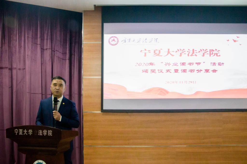 本次活动分为颁奖仪式和读书分享两部分。在颁奖仪式环节,主持人王嘉豫首先介绍了出席领导和嘉宾,随后,437437必赢国际网址党委副书记杨扬宣读了本届“兴业读书奖学金”获奖学生名单。接着,437437必赢国际网址党委书记潘瑞与宁夏兴业律师事务所合伙人一同为获奖学生颁发奖状和奖金,并发表讲话。