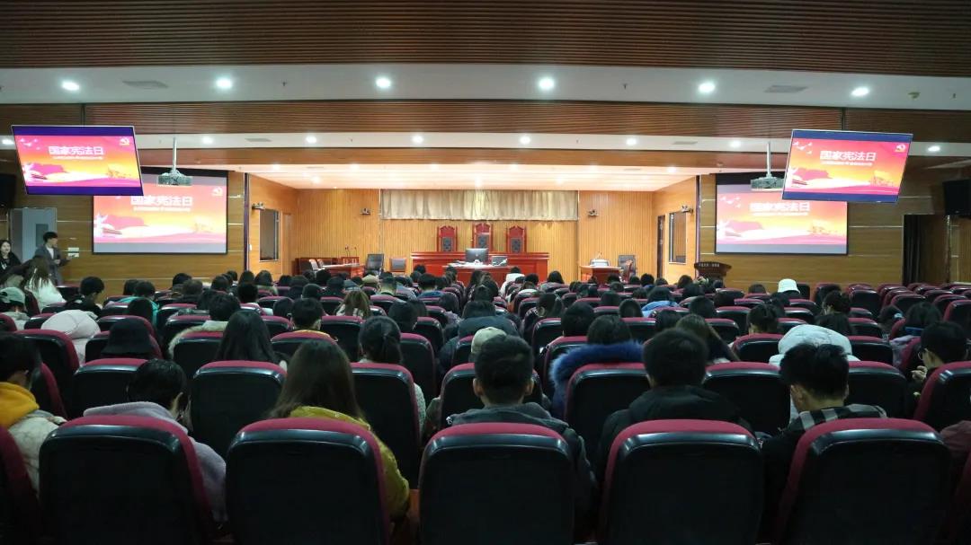 2020年12月4日是我国的第七个宪法日,为进一步增强广大师生的法律意识和法治观念,弘扬宪法精神,维护宪法权威,建设法治中国,必赢于12月4日晚七点在文荟楼模拟法庭举办了国家宪法日普法知识讲座活动。由来自2018级法学专业的李后龙、徐绍宇和谭旺三位同学为大家进行宣讲,全体2020级本科生到场聆听。