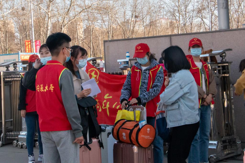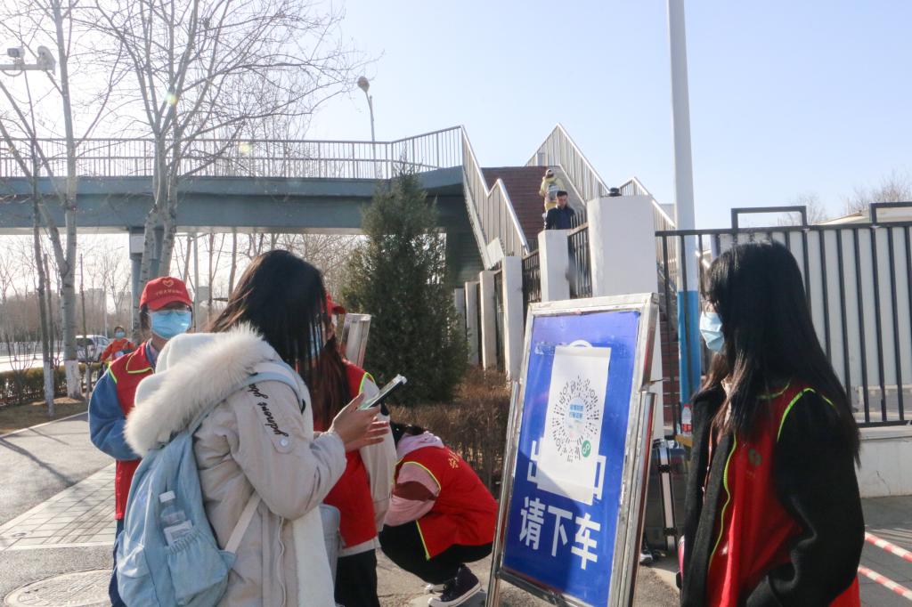 同学们佩戴口罩,携带行李,手持健康登记卡和健康码,整齐有序地排列在校门口等待通过测温通道。学院领导、辅导员、学生骨干和青年志愿者以饱满的工作热情和高昂的精神姿态迎接每一名返校同学,认真核对行程信息及健康状态的同时,提醒同学们进入宿舍要开窗通风、进行彻底的卫生清洁等一系列注意事项,并为同学们发放防疫健康手册。