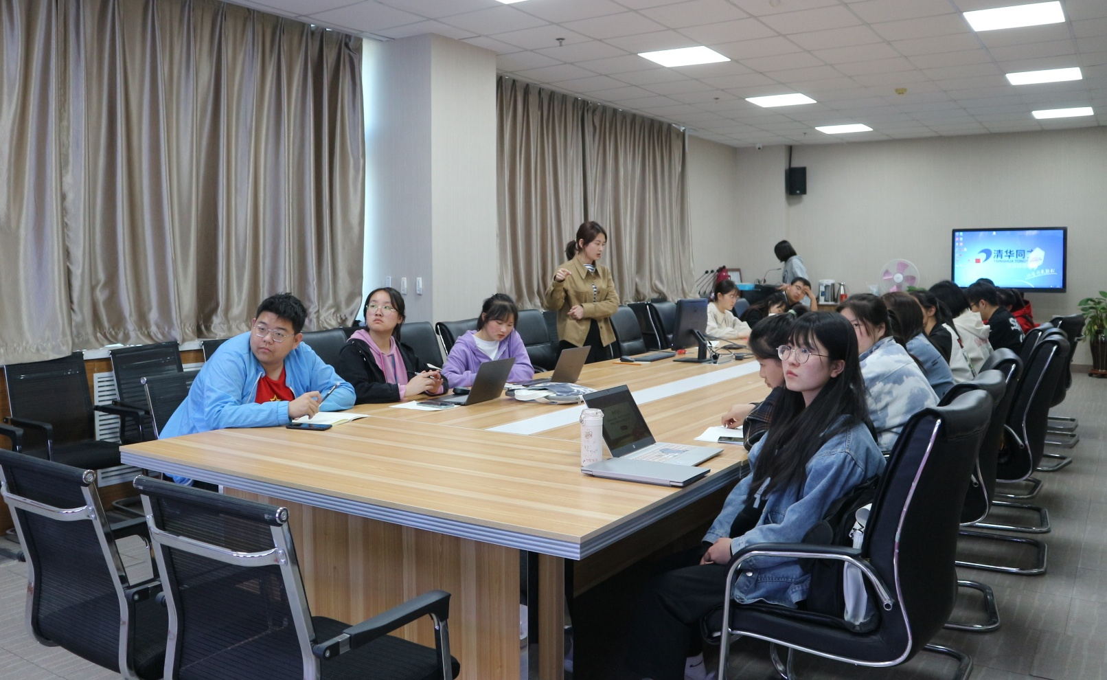 培训中,杨璠以通俗易懂的语言向同学们讲解拍摄技巧。从会场拍摄的三要素,到会场拍摄流程,再到最后的各种拍摄注意事项,杨璠紧紧围绕传媒中心工作实际,向同学们讲授最切实有效的提高摄影质量的方法,并回答了现场同学提出的问题。培训现场气氛活跃,同学们纷纷表示获益良多。