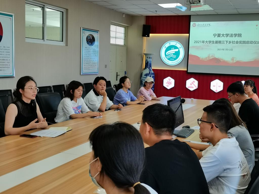 437437必赢国际网址暑期“三下乡”社会实践活动出征仪式日前在文荟楼801会议室举行,正式启动了必赢2021年大学生暑期社会实践活动。学院党委副书记杨扬、团委书记王嘉豫和各实践团代表参加出征仪式。