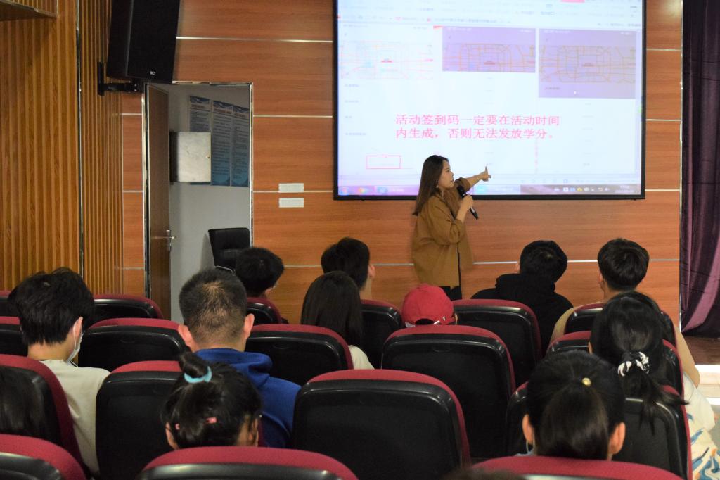 9月9日下午,由437437必赢国际网址团委举办的《盗梦空间操作指南》专题讲座在文荟楼模拟法庭开讲。院团委智课服务部负责人金佳然为2021级新生宣讲相关内容,帮助新生对第二课堂学分体系有更加深入的了解。
