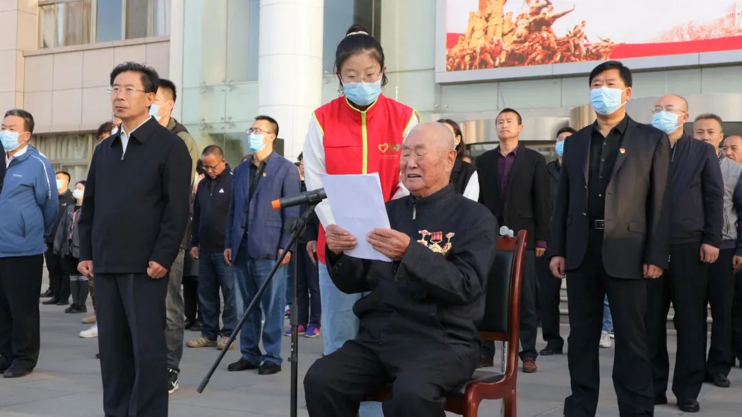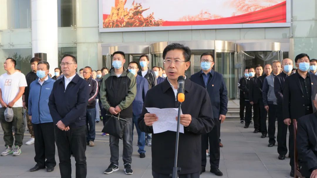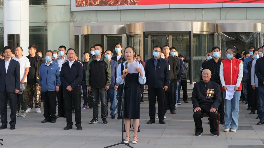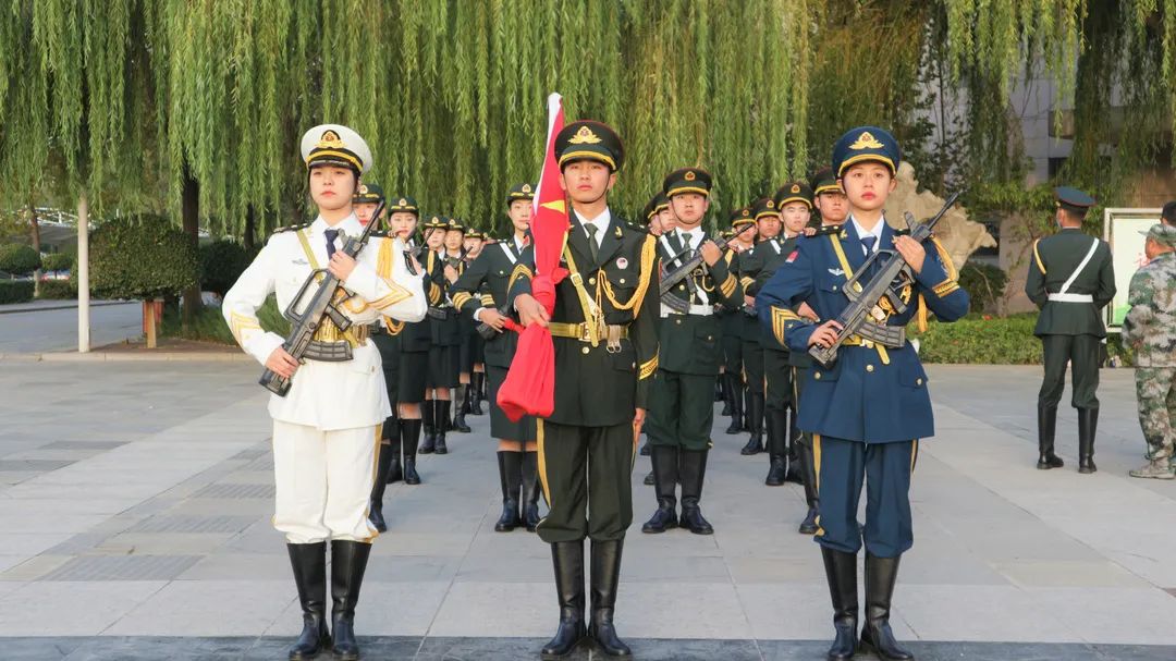 升旗仪式开始。伴随着庄严的国歌响起,五星红旗迎风飘扬,全体师生满怀崇敬之情向国旗行庄严的注目礼,共唱国歌。国歌唱毕,全体师生向为中国人民解放事业和共和国建设事业英勇献身的烈士默哀。随后,校党委书记李星讲话,离退休教职工焦全贵寄语,学生代表发言。