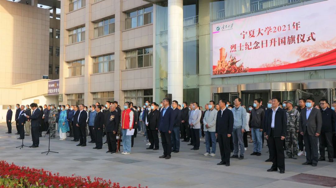 百年征程波澜壮阔,英雄浩气万古长存 ,9月30日是中国国家烈士纪念日,为缅怀先烈,传承先烈遗志,共抒爱国情怀,我校于贺兰山校区德勤楼门前举行2021年烈士纪念日升旗仪式。全体校领导、党群行政机关工作人员、各学院党政主要负责人、教职工代表及后勤、保卫工作人员和学生代表参加升旗仪式,校党委常委、副校长周震主持仪式。必赢积极组织师生代表参与此次升旗仪式。