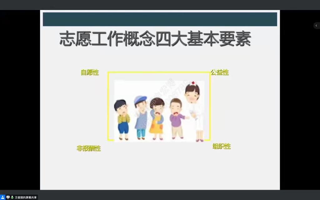 王俊丽首先邀请有志愿服务经历的学生发言,分享自身志愿服务经历,以此引申出志愿工作概念的四大基本要素,即自愿性、公益性、组织性和非报酬性,以及志愿服务工作对社会的意义。随后,王俊丽系统性地介绍了社区志愿者服务的形式、作用和志愿参与的实践模式。活动最后,王俊丽引导参与学生思考,成为一名社区志愿者所应具备的能力,为学生们今后更好地服务人民、奉献社会打好基础。