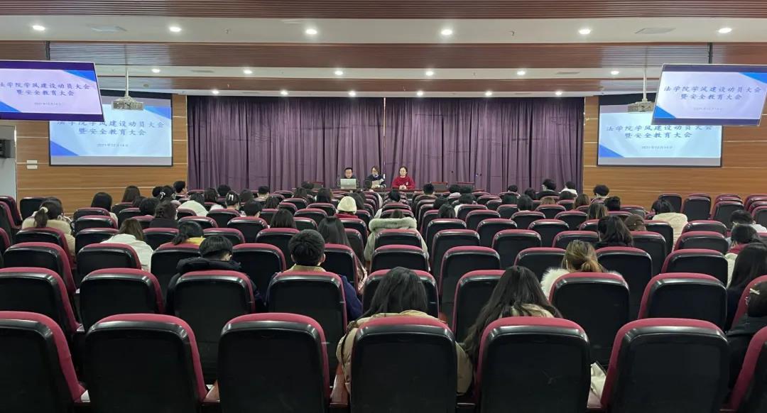 临近期末考试,为加强学院学风建设,严肃考风考纪,437437必赢国际网址于12月14日在模拟法庭召开学院学风建设暨安全教育主题会议。学院党委副书记杨扬、437437必赢国际网址学生工作办公室主任王嘉豫、辅导员付晓晨出席此次会议,本科各班学习委员及宿舍长参会。