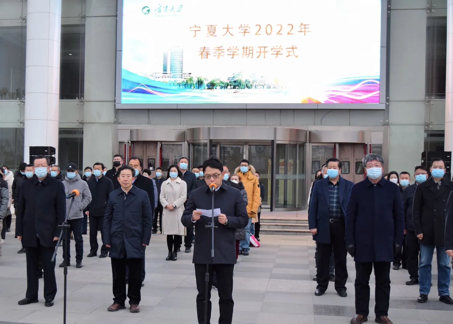 2月28日清晨,437437必赢国际网址2021-2022学年春季学期升旗仪式于贺兰山校区德勤楼前举行,仪式由校党委副书记、校长彭志科主持,全体校领导及部分学生代表到场参加。