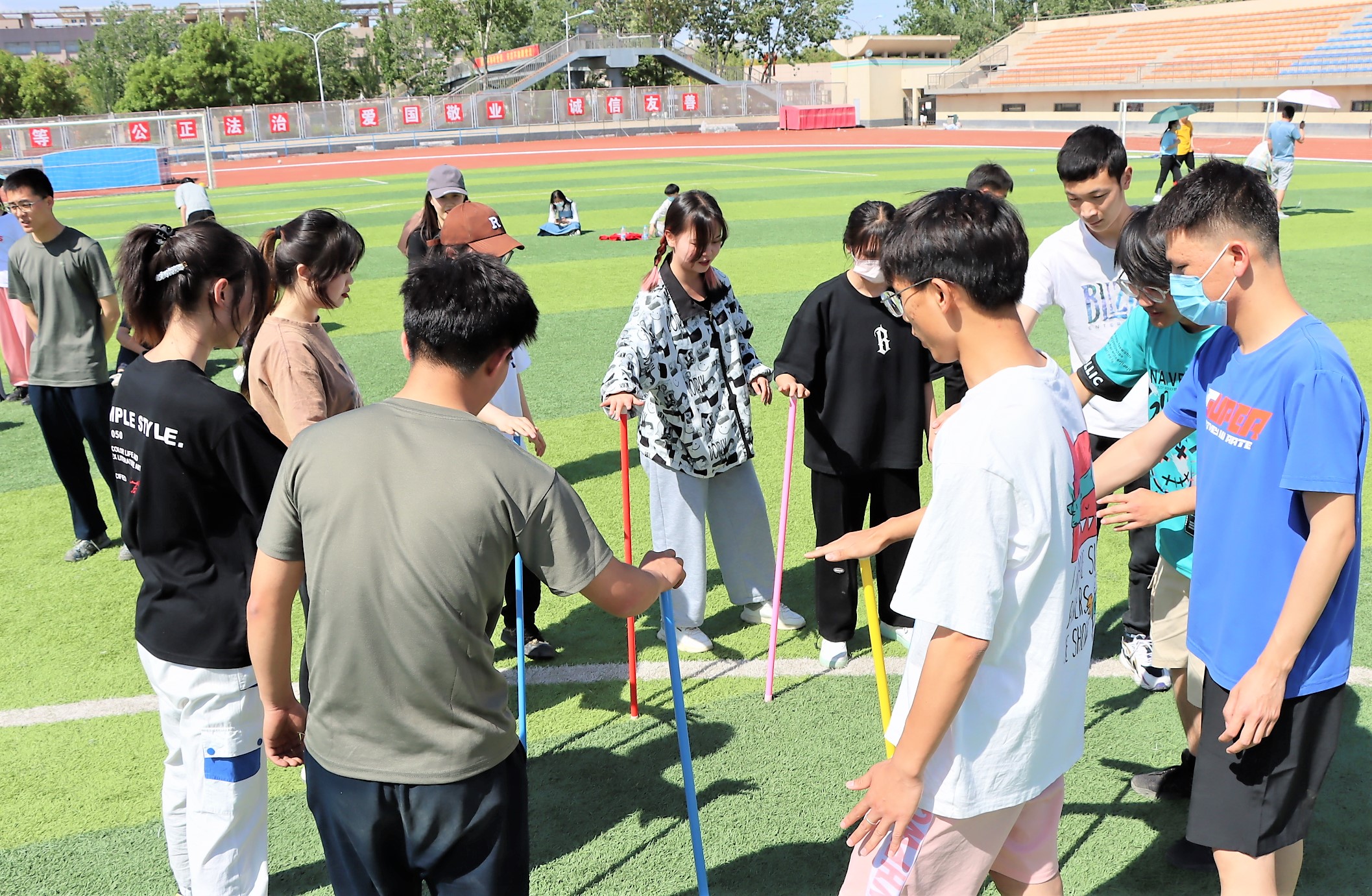 在玩乐中锻炼体魄,强化集体意识,凝聚团队精神,日前由学院团委、学生会举办的“运动青春快乐无限”主题趣味运动会于怀远校区足球场火热开赛。