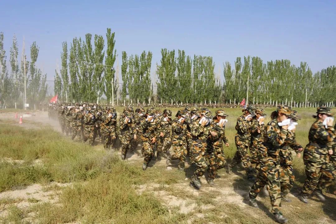 拉练路上的第一道坎,防空袭训练到来,警戒声响起,我们于草丛中隐藏自己;毒区随之而来,捂住口鼻,俯下身子,冲过去,路途再远,也咬牙坚持;在拉练路途中,当教官们向第一排发布口令后,整队全神贯注,在极短速度将口令传递迅速准确。拉练路上,我们昂扬又向上。迈步向前,我们激情又澎湃。在坚持之后,我们抵达了终点,在烈日的照耀下,每个人都完成了一次属于自己的旅程。