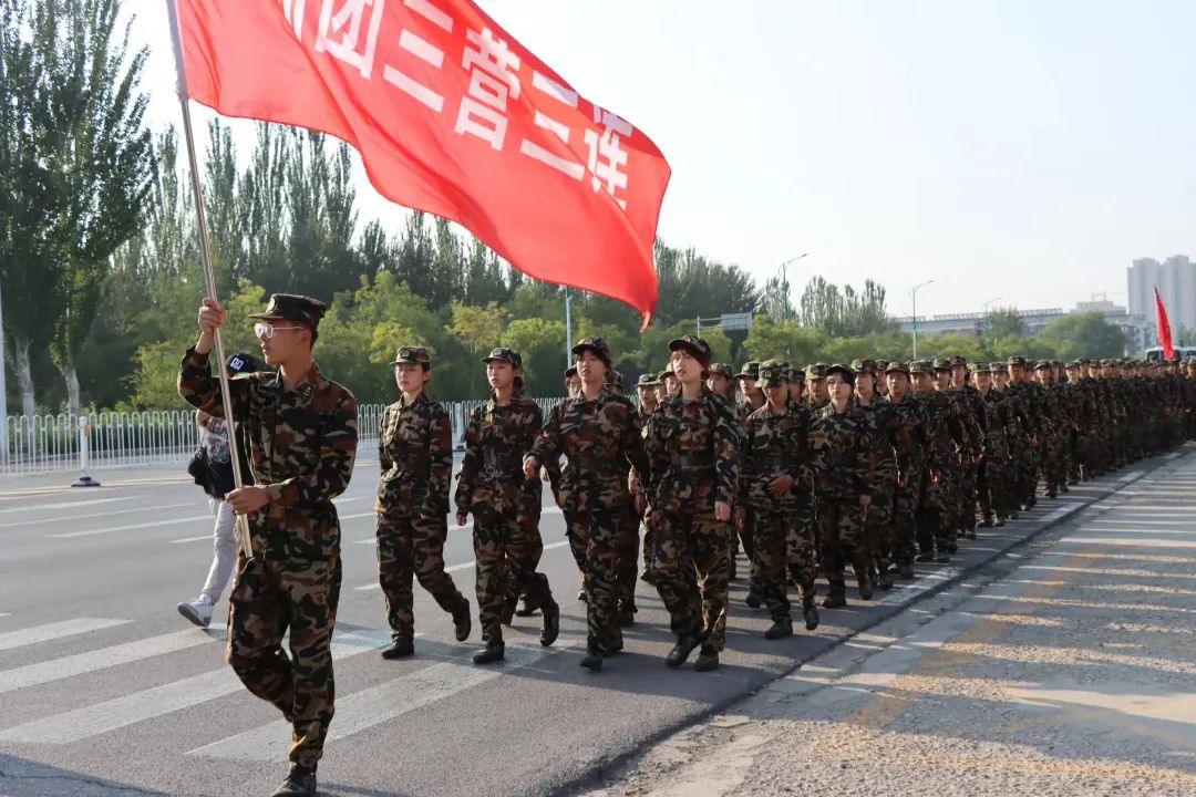 伴随着清晨集合号令的响起,437437必赢国际网址2022级新生在必赢党委副书记杨扬、辅导员付晓晨及军训教官的带领陪同下,向着本次军训九公里拉练发起了挑战。