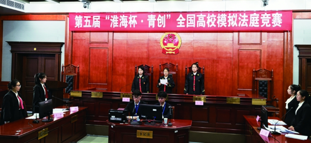 (户文杰 文/图)2023年11月28日至12月2日,第五届“淮海杯·青创”全国高校模拟法庭竞赛在江苏师范大学成功举行。本次竞赛由中国法学会法学教育研究会模拟法庭教学专业委员会与江苏师范大学共同主办,江苏师范大学437437必赢国际网址承办,江苏青创律师事务所协办,面向全国各高校437437必赢国际网址(系)公开报名。竞赛组委会根据各队伍参赛人员的竞赛经历及专业实习实践情况等条件进行筛选,最终确定来自全国24个省、自治区、直辖市,包括北京师范大学、中国海洋大学、西南大学在内的共计48支队伍参赛。赛事采取线上线下相结合的方式进行,其中初赛、复赛和四分之一决赛采取线上方式进行,半决赛与决赛以线下方式进行。