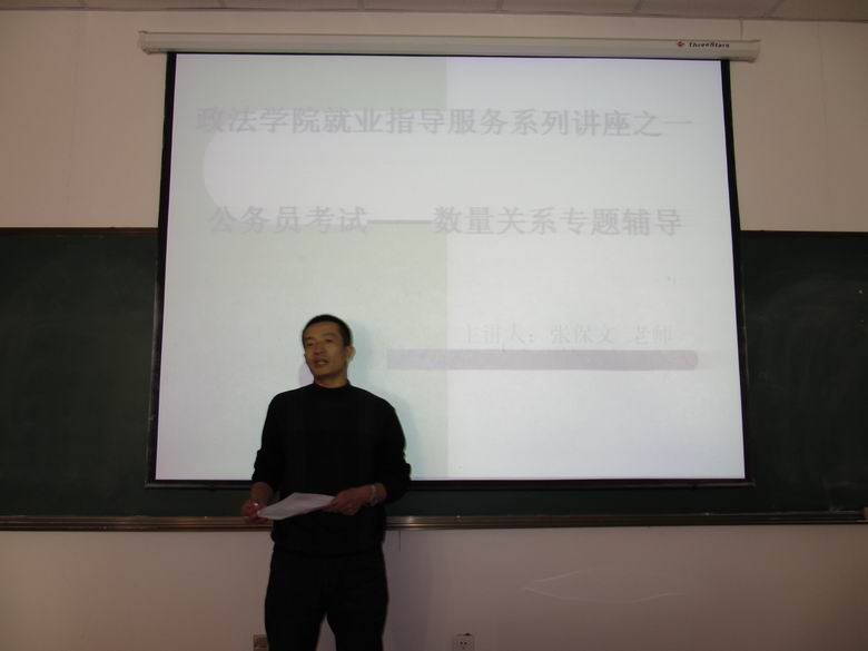 通过公务员考试走上工作岗位是必赢毕业生就业的主要途径之一,公务员应试能力培训是必赢毕业生就业指导服务工作的重点,2010年国家公务员考试在即,为引导广大考生做好最后阶段的冲刺,针对考生在行政能力测试考试中存在的问题,11月6日至7日,必赢特邀请数学计算机学院张保文老师在文科楼111教室开展了相关的公务员应试——数量关系讲座。来自必赢及其他兄弟院系80余名学生聆听了讲座。