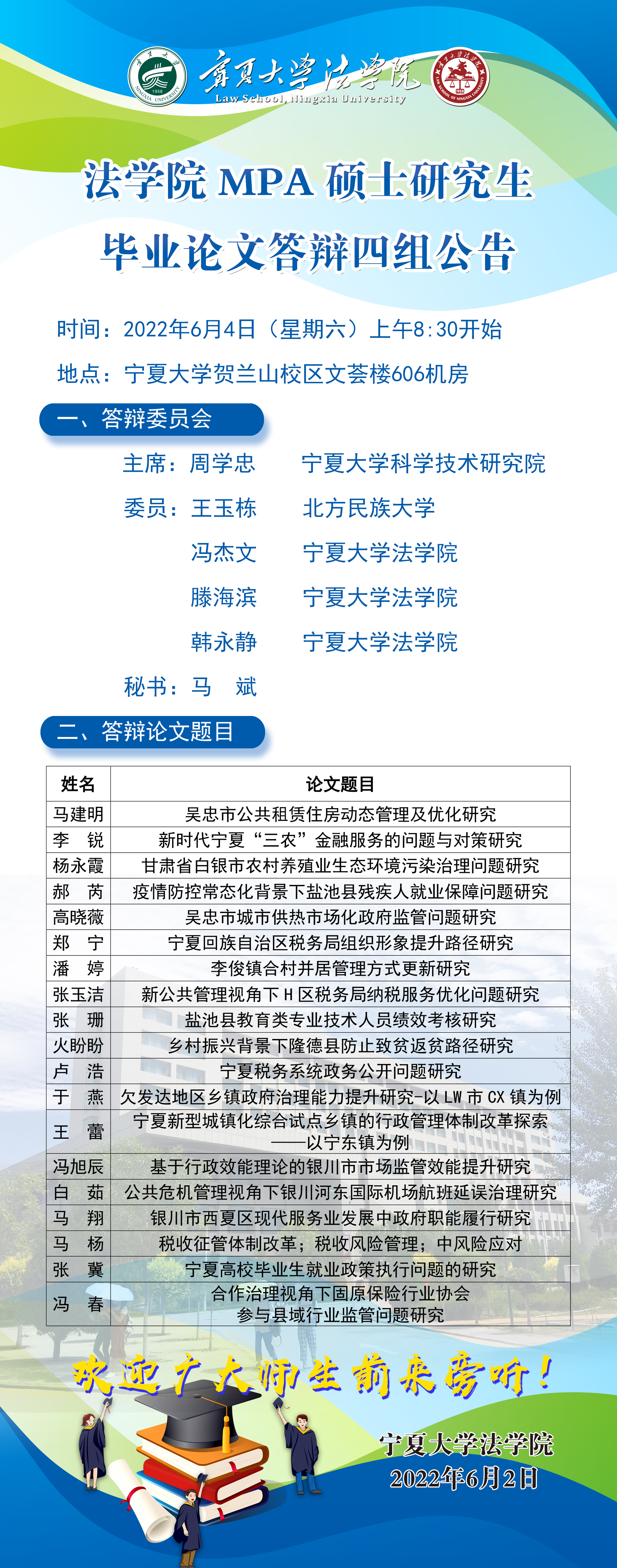 437437必赢国际网址公共管理(MPA)硕士研究生毕业论文答辩四组公告