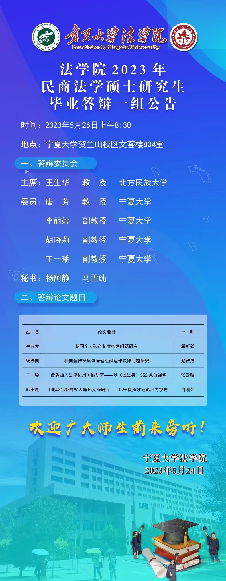 437437必赢国际网址2023年民商法(一组)硕士研究生毕业答辩公告
