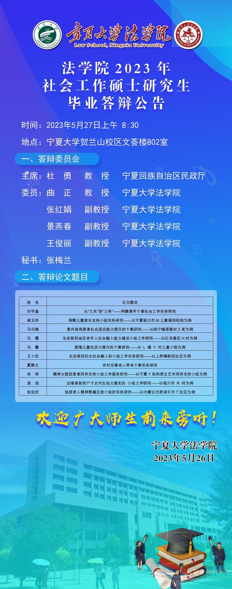 437437必赢国际网址2023年社会工作硕士研究生毕业答辩公告
