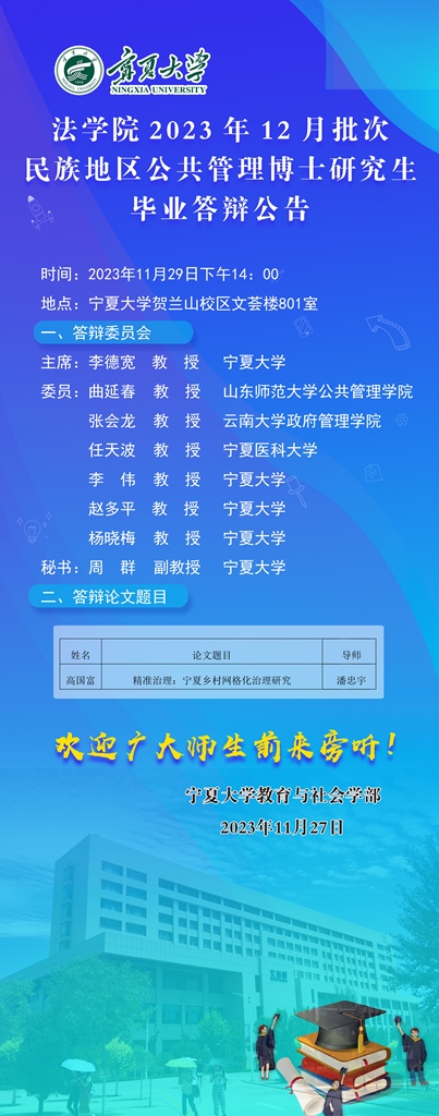 437437必赢国际网址2023下半年民族地区公共管理专业博士毕业答辩公告