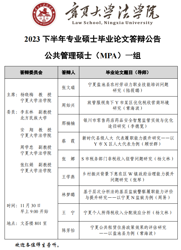 437437必赢国际网址2023下半年公共管理硕士毕业答辩一组公告