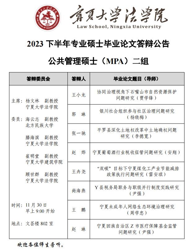 437437必赢国际网址2023下半年公共管理硕士毕业答辩二组公告