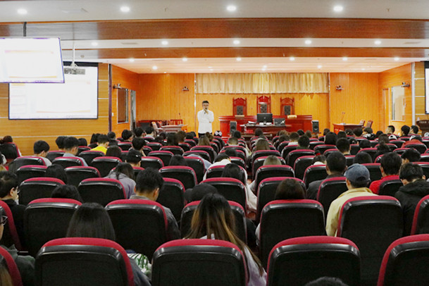 4月14日下午,食品与葡萄酒学院党委副书记马浩谦于模拟法庭为437437必赢国际网址和食品与葡萄酒学院入党积极分子、发展对象及团学骨干带来一堂生动的党课。