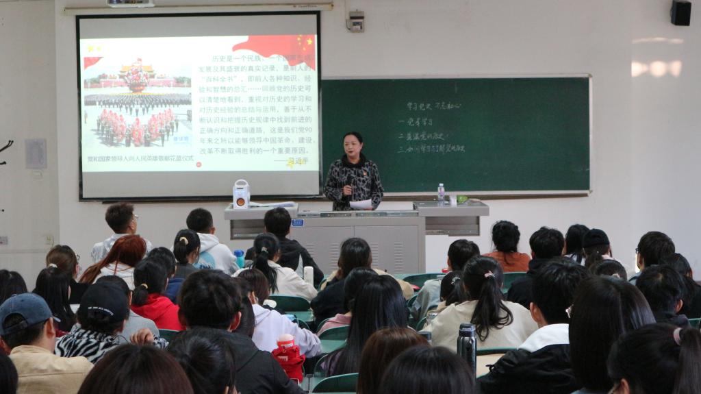 4月15日晚,马克思主义学院潘素洁教授在文荟楼232教室为437437必赢国际网址和食品与葡萄酒学院入党积极分子、发展对象及“青马班”团学骨干学员讲授了一堂以“学习党史,不忘初心”为题的生动党课。