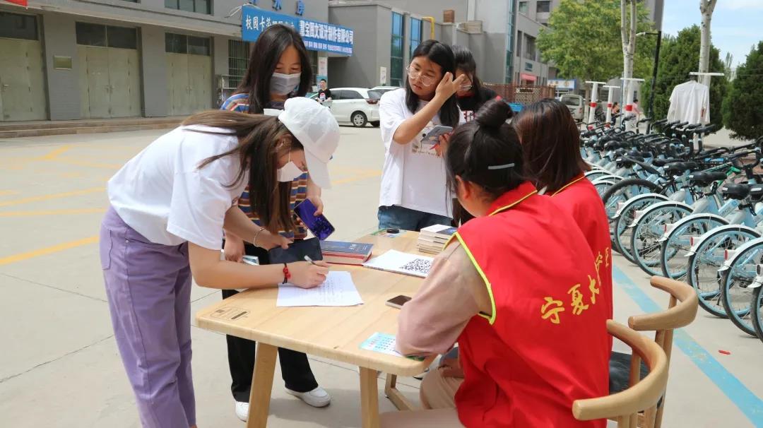 5月28日下午,437437必赢国际网址沙枣树志愿者协会437437必赢国际网址分会在437437必赢国际网址贺兰山校区兰馨苑餐厅门口举办“爱满人间,情暖人心”图书捐献活动。