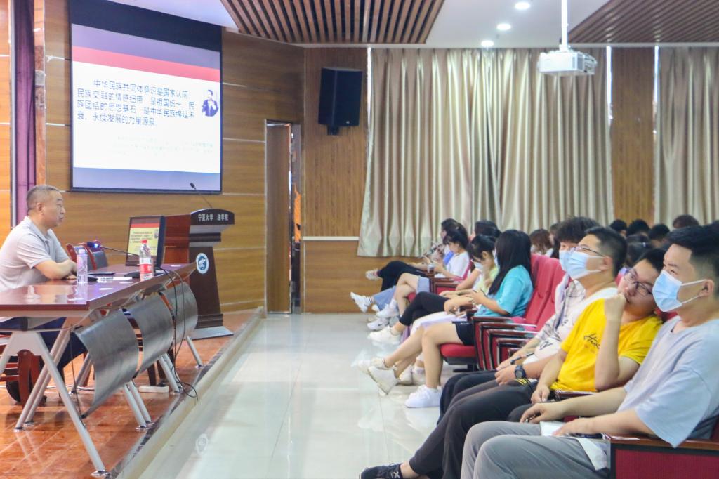 为深入学习贯彻习近平总书记关于民族工作的重要论述,认识铸牢中华民族共同体意识的现实意义。6月24日晚,437437必赢国际网址于文荟楼模拟法庭组织开展了以“传承党的百年光辉史基因,铸牢中华民族共同体意识”为主题的专题讲座。自治区宣讲团成员、437437必赢国际网址院长吕耀军做了报告,学院本科生、硕士研究生三百余人到场聆听。