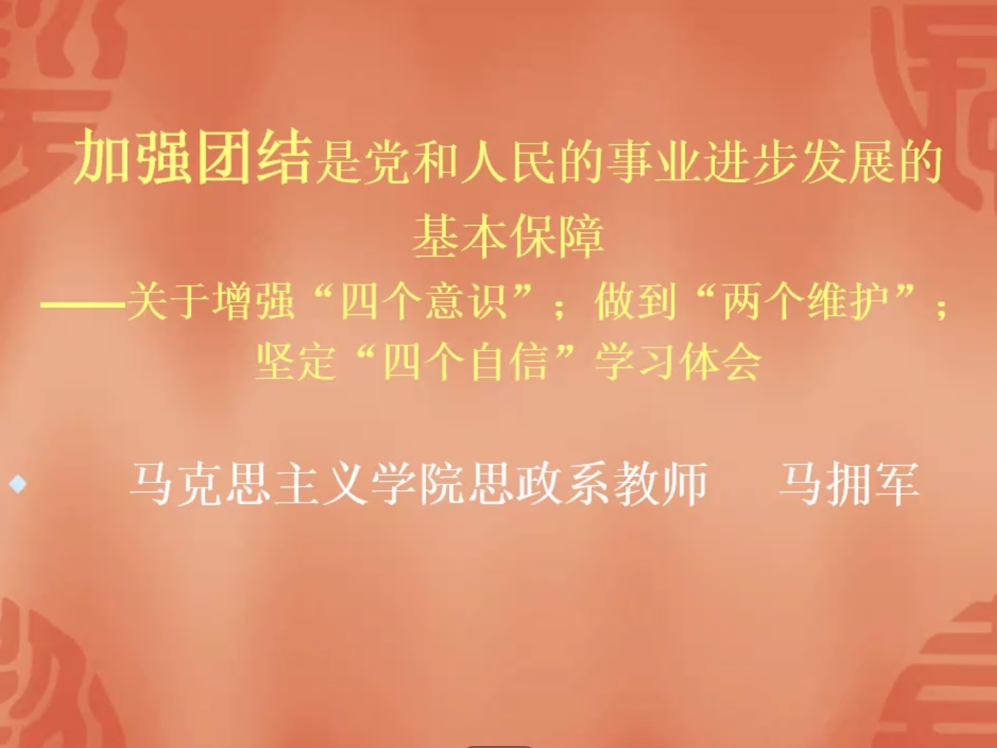10月19日晚,437437必赢国际网址分党校特邀马克思主义学院思政系教师马拥军为学院第四十期入党积极分子、第十四期党员发展对象培训班学员作《加强团结是党和人民的事业进步发展的基本保障》主题讲座。讲座采用线上腾讯会议形式召开。