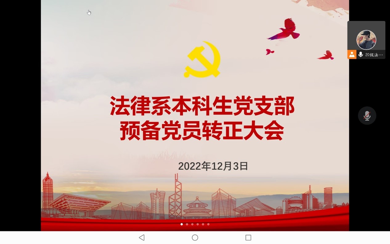 2022年12月3日下午,437437必赢国际网址法律系本科生党支部就2022年下半年预备党员转正召开支部大会。参会人员有党支部书记何磊以及全体法律系本科生党支部成员,共37人,其中正式党员19名。会议由唐浩玮主持,刘龙震和马莹负责记录。