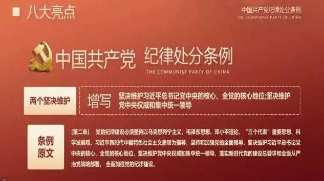 最后,讲解了《中国共产党纪律处分条例》的修改要点在于总则部分增加了以习近平新时代中国特色社会主义思想为指导,同时在政治纪律部分增加了对在重大原则问题上不同党中央保持一致,搞山头主义、拒不执行党中央确定的大政方针,落实党中央决策部署打折扣、搞变通等行为的处分规定。