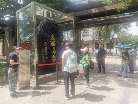 上午十时许,学院教职工在石嘴山市石炭井工业遗址公园导游的引领下开始了一段追寻前人艰苦奋斗历程之旅。遗址公园门前的通道上,镌刻着来到石炭井的建设者的年代和人数:1951年,203人,我们来自北京,在贺兰山下,吹响了开发建设集结号;1956年,1135人,我们来自陕西,在石嘴山拓荒安家;1957年,5000人,我们来自山西,在贺兰山腹地筹建石嘴山矿务局;1958年,6253人,我们来自河南,石嘴山成为我们的第二故乡……漫步走过这条特别的通道,仿佛重走了一遍建设者们历时70多年的奋斗足迹。